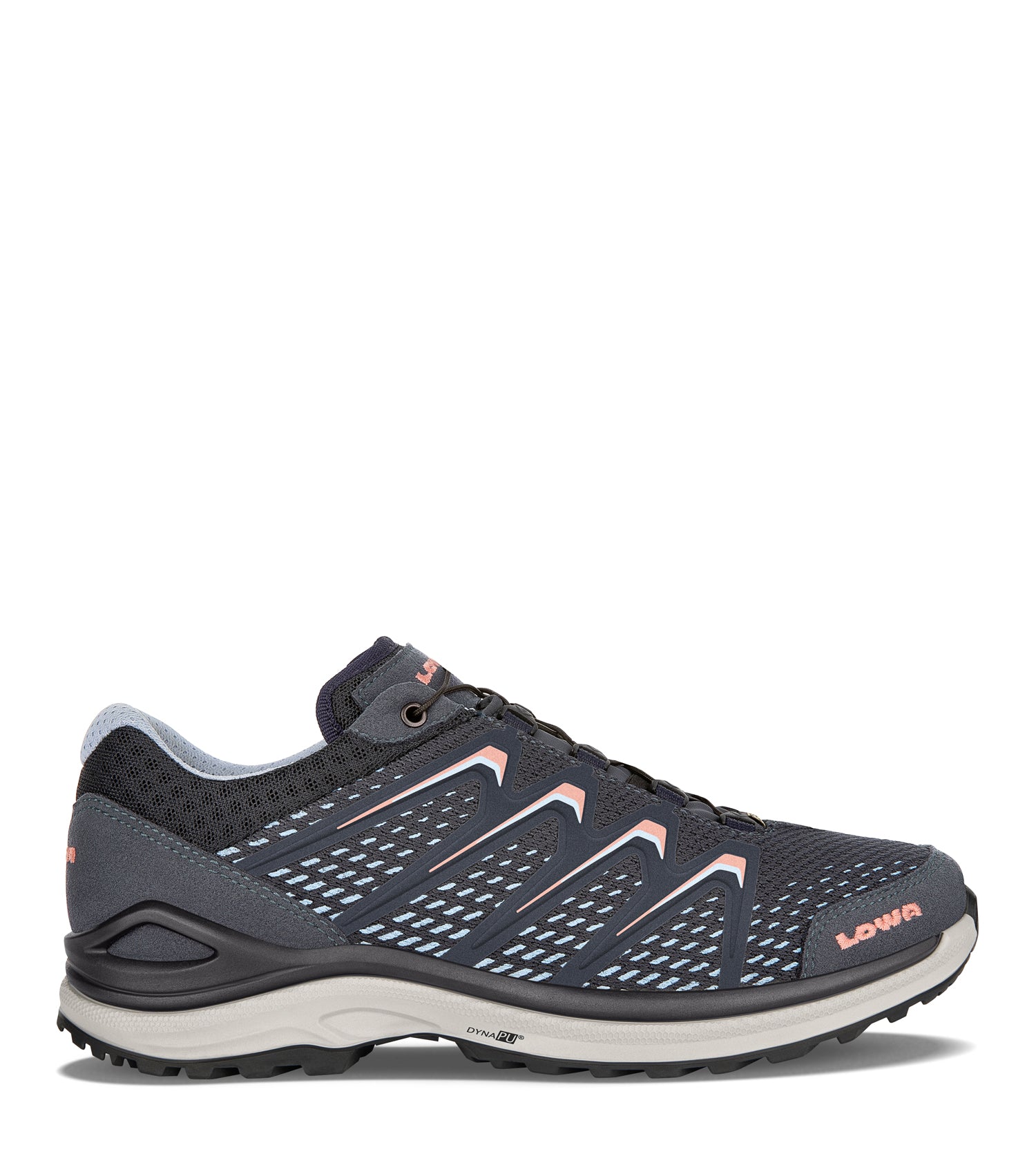 • Semelle : Elle est équipée d'une semelle LOWA DynaPU à double injection en PU, offrant un confort optimal dans les conditions les plus rudes. La semelle a un profil dynamique pour une grande adhérence et de larges crampons pour un contact optimal avec le sol.